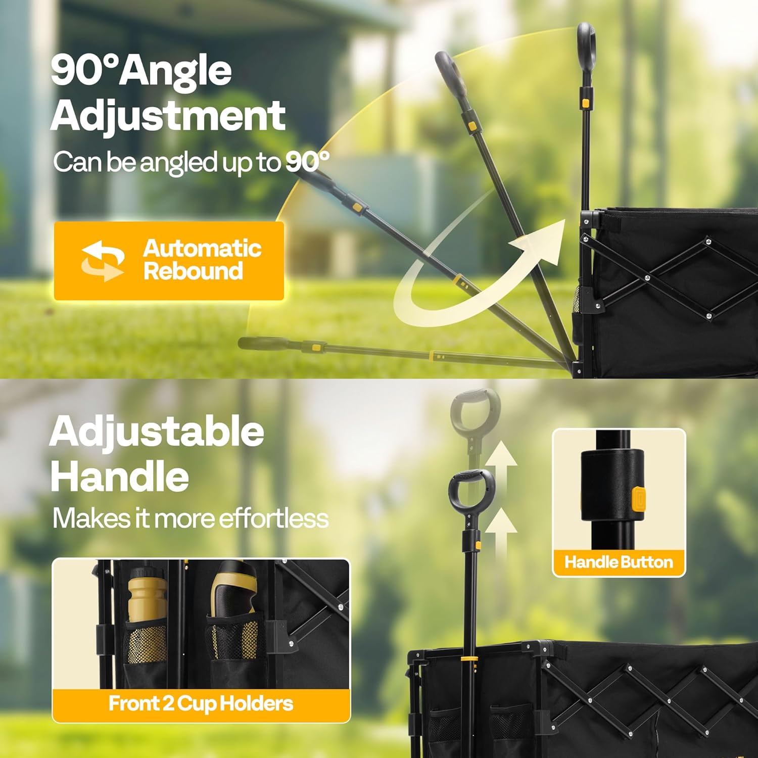 A teleszkópos fogantyú 32 "-ig 42" -ig terjed, hogy befogadja a különböző felhasználói magasságokat
